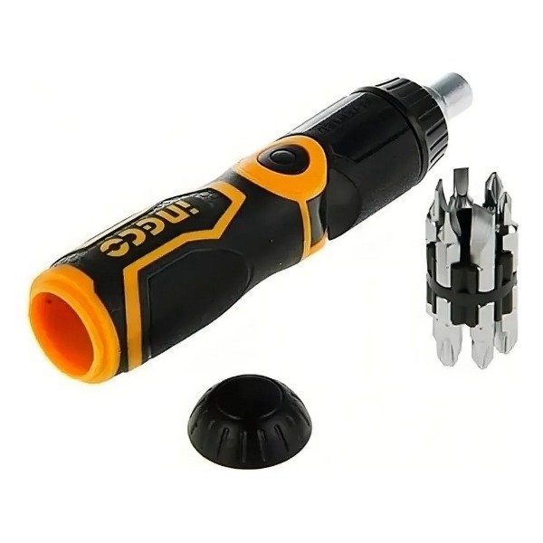 Especificaciones: • Mango de trinquete estilo INGCO de 1 pieza • Mango plegable, trinquete de alta calidad. • Puntas de destornillador de 12 piezas 6.35 * 25 mm • Tamaño: SL4, SL5, SL6, SL7, PH0, PH1, PH2, PH3, PZ0, PZ1, PZ2, PZ3 • Material: CR-V