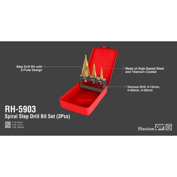 El juego de brocas escalonadas Ronix de 3 piezas está diseñado para perforar con precisión acero, inoxidable, aluminio, cobre y otros metales.