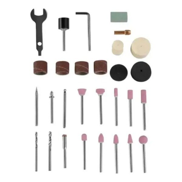 Incluye 40 accesorios diferentes de herramientas rotativas adecuadas para lijar, cortar, esmerilar, tallar, pulir y limpiar