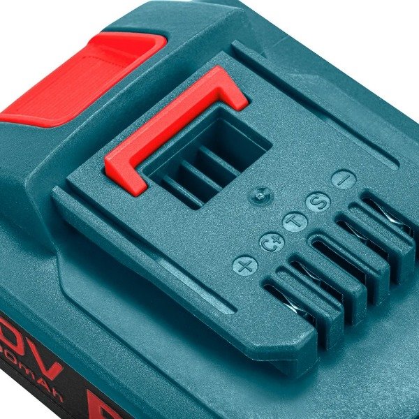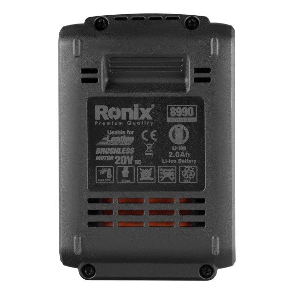 La batería de 2 Ah se carga rápidamente y proporciona potencia constante a todas las herramientas de la serie Ronix de 20 V.