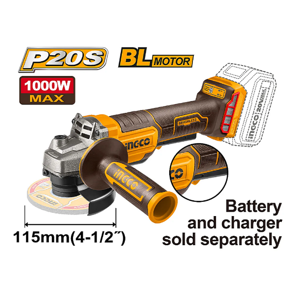 Amoladora Inalámbrica 20v Ingco motor sin carbones, modelo CAGLI211156