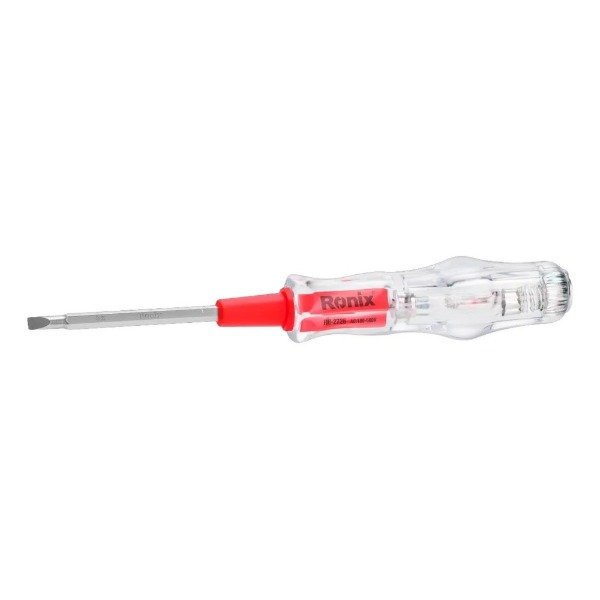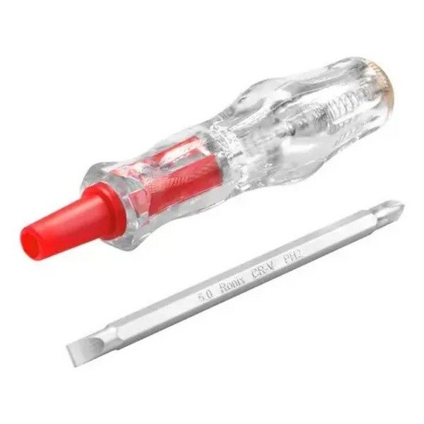 El Ronix RH-2726 es un comprobador de voltaje de alta eficiencia, diseñado para detectar la presencia de electricidad en circuitos, tomas de corriente y cables. Su diseño multifunción permite utilizarlo tanto como comprobador eléctrico como destornillador de doble punta (Phillips y ranurada).